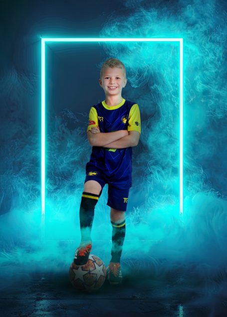 From explosive glass-shatter effects and fog-filled stadium backdrops to vibrant paint splash silhouettes and multi-photo collages — these designs are the perfect keepsake for young footballers and proud parents alike. Ideal for gifting, bedroom decor, presentation nights, or showcasing team spirit on social media.