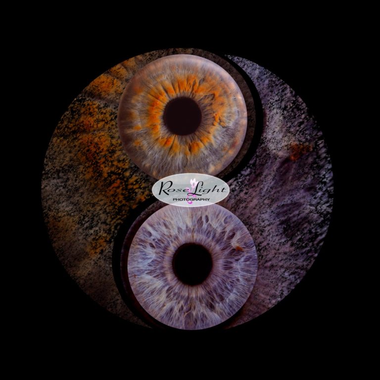 A balanced design that combines two irises into a yin & yang symbol, representing harmony and contrast.